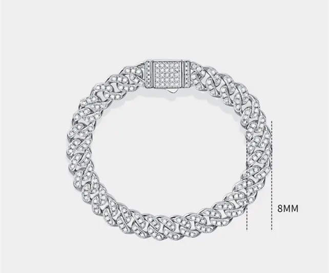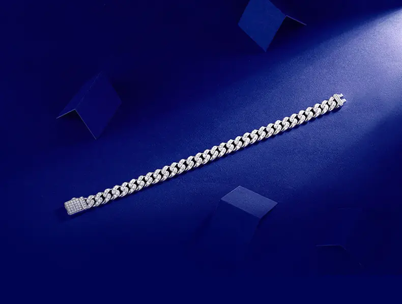 Ez a moissanite kövekkel kirakott ezüst karkötő kifinomult csillogást és modern eleganciát sugároz. Precíz kidolgozása és ragyogó kövei prémium megjelenést biztosítanak. Könnyű, kényelmes viselet, amely bármilyen alkalomhoz illik. Ideális választás azoknak, akik stílusos és időtálló ékszert keresnek.