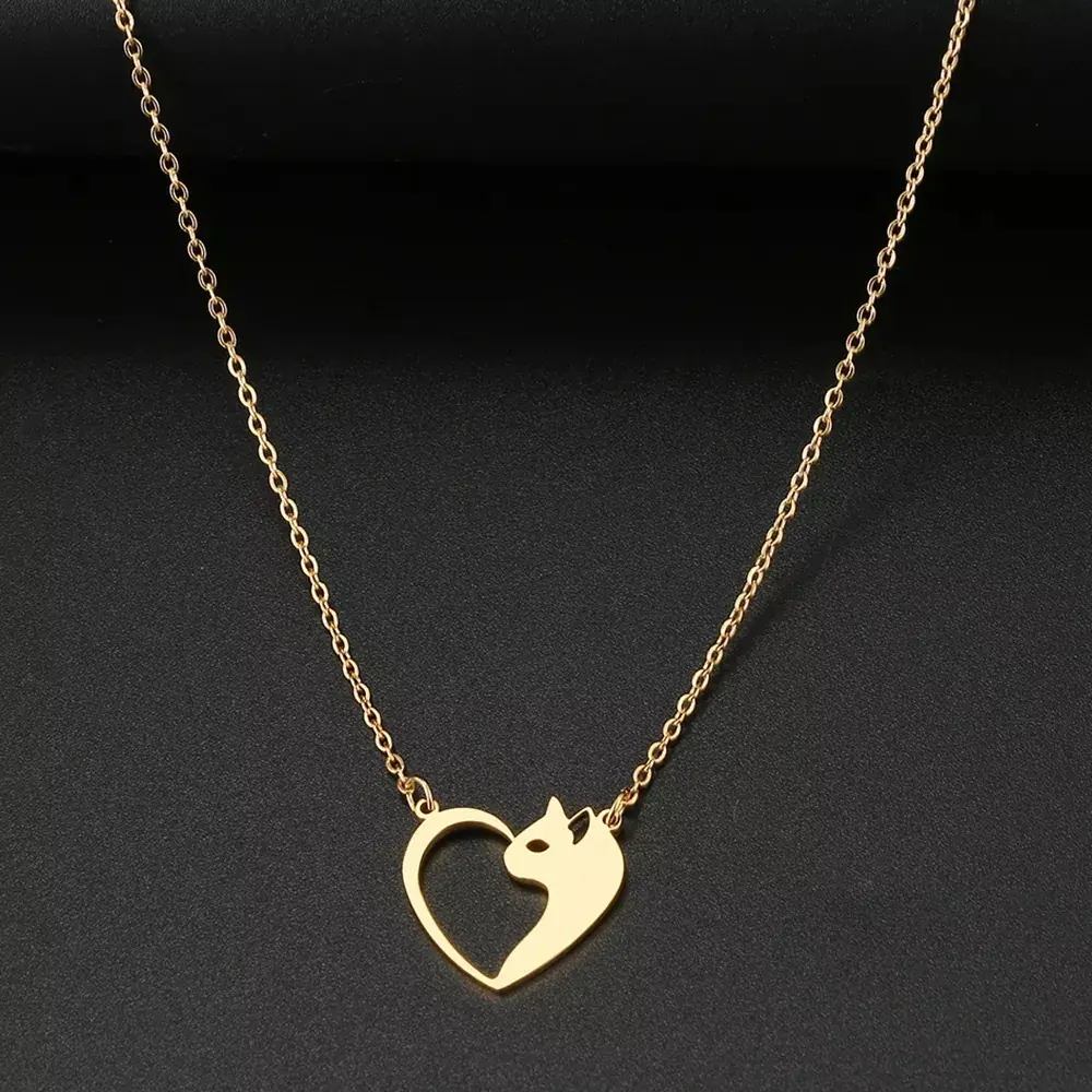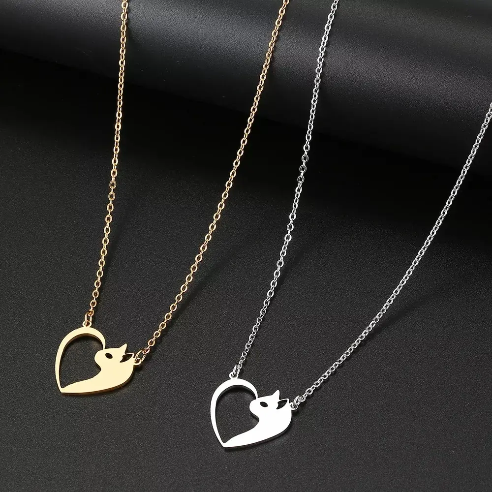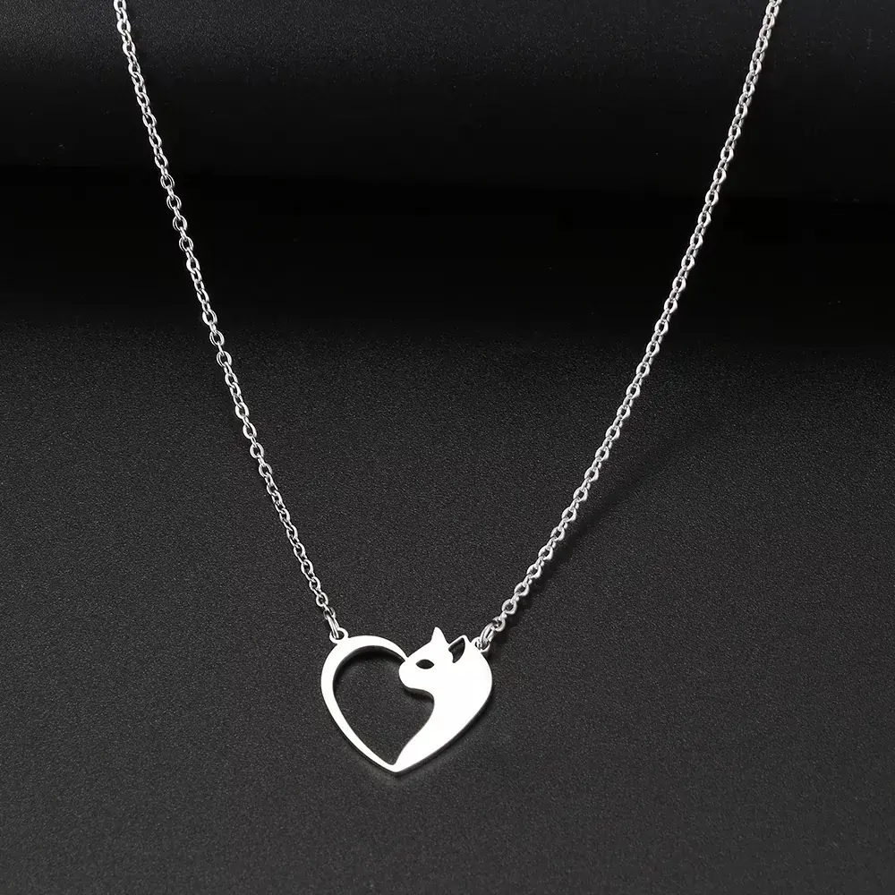 Nemesacél nyaklánc Cicaszív medállal, cicabarátoknak ajánljuk!