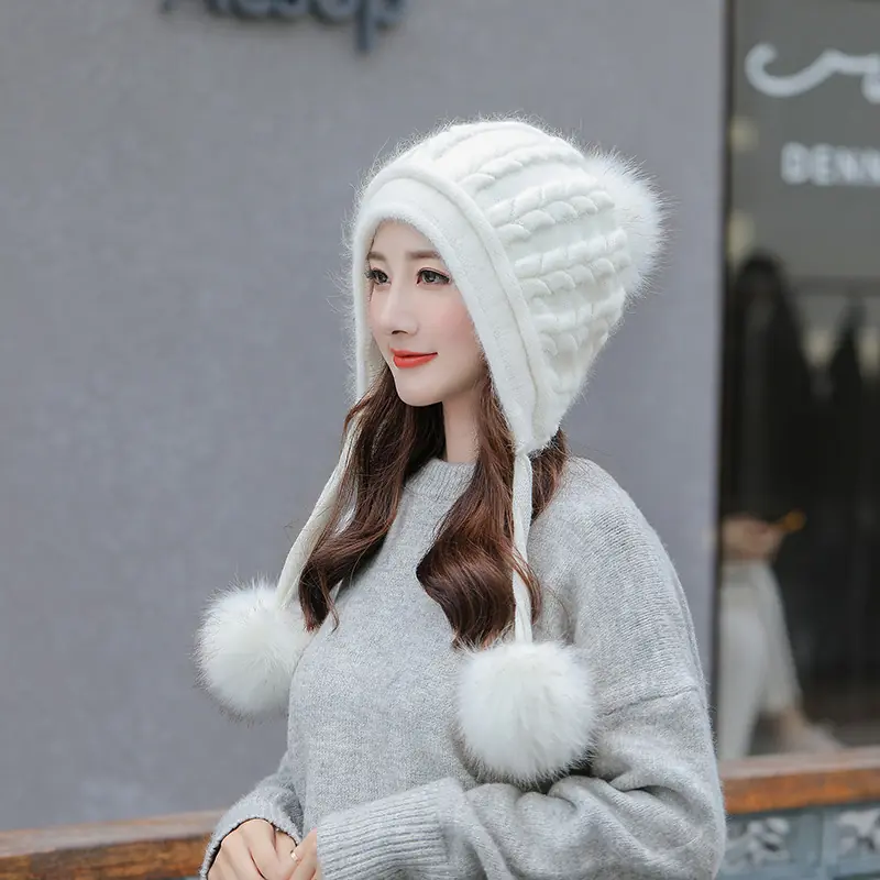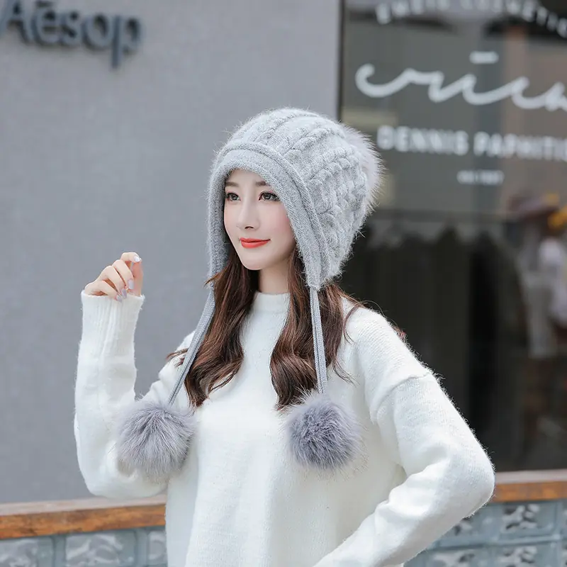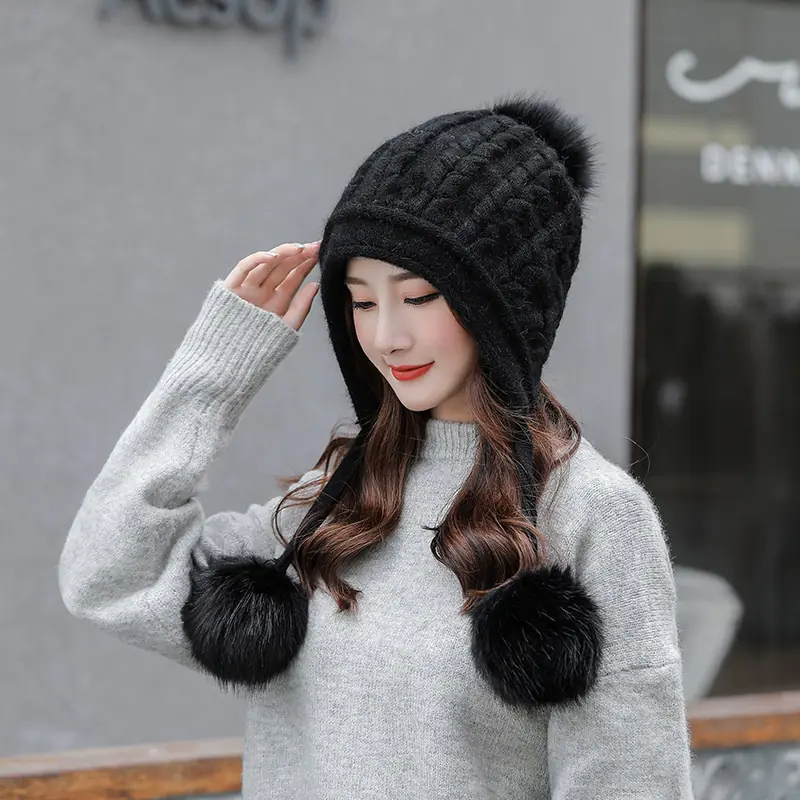 Divatos női kötött sapka különféle színekben szőrmepamaccsal