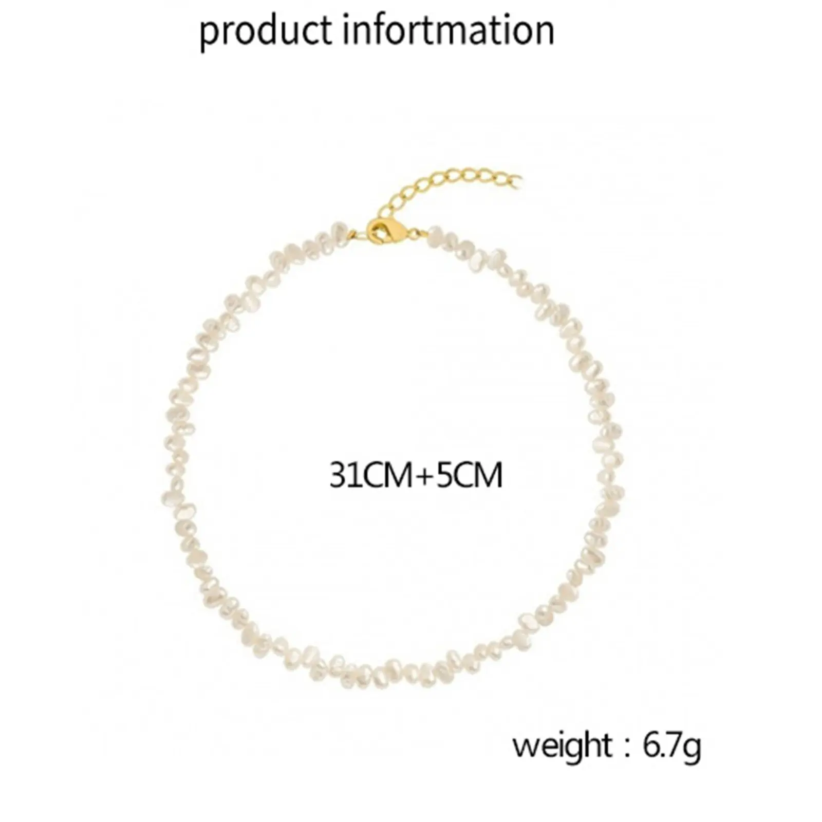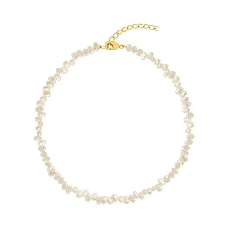 Anyaga: Az arany gyöngy nyaklánc fémből és gyöngyutánzatból készült,