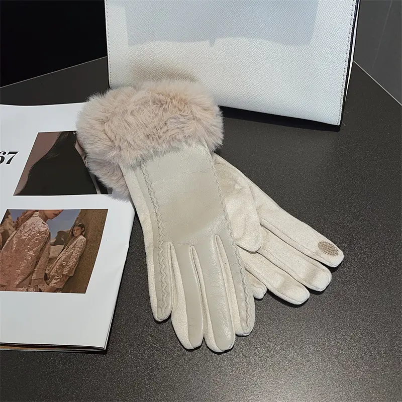 Női szőrmés bőrkesztyű velur tenyér résszel különböző színekben